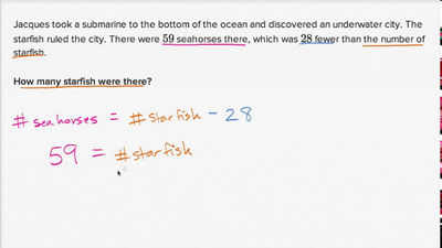 Learn how to solve word problems that use the words "more" and "fewer". Numbers used are 100 or less.