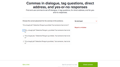 Commas in dialogue, tag questions, direct address, and yes-or-no responses