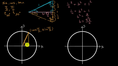 Cosine, sine and tangent of π/6 and π/3