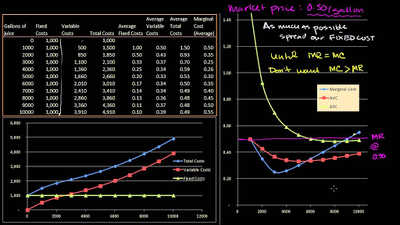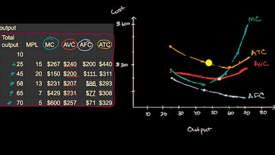 In this lesson we start to explore the link between productivity and costs. We explore marginal cost, average fixed cost, average variable cost, average total cost, total cost, and total variable cost and how these change as total output changes.