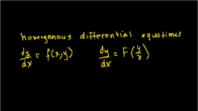 In this equations, all of the fat is fully mixed in so it doesn't collect at the top. No (that would be homogenized equations).Actually, the term "homogeneous" is way overused in differential equations. In this tutorial, we'll look at equations of the form y'=(F(y/x)).