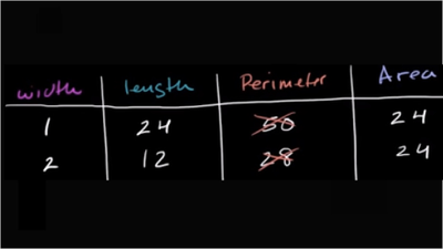 Area & perimeter word problem: table
