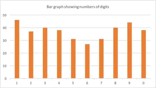 There doesn't seem to be any obvious skew with lots more double digits than non double - double digits are shown in orange. In the latter data, we would expect around 31 double digits, and we get 27. That seems reasonable.