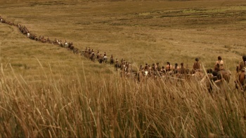 Daenerys looks out for the first time onto the vast, empty, flat plain of the Dothraki Sea with Ser Jorah Mormont beside her. Daenerys sees she has out-distanced the rest of Drogo’s khalasar, who are still climbing the ridge behind her. Among them she can see her brother Viserys struggling with his riding. The sight brings back the memory of Illyrio Mopatis offering to let Viserys stay in Pentos as his guest. Viserys had refused and insisted on coming with the khalasar to ensure that Drogo would give him the army that he promised. Daenerys commands Jorah and the others to wait. Mormont comments that Daenerys is starting to sound like a queen but Daenerys corrects him, calling herself a khaleesi.