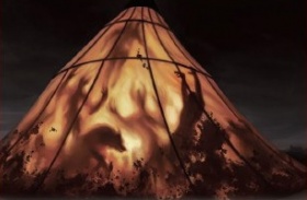They lower Drogo into a bath and bring his stallion into the tent. Jhogo pleads with Daenerys not to use forbidden bloodmagic and to allow him to kill the maegi. It takes Rakharo, Quaro, and Aggo to force the frightened stallion to the tub while Mirri Maz Duur chants. The godswife uses a red bronze knife covered in glyphs to cut the horse’s throat and fill the tub with blood. The godswife then orders Daenerys, who is now filled with fear, to leave the tent; no one must look upon the old and dark powers the godswife’s spell will wake. Outside, the gathered crowd stares at her. When Ser Jorah, now in his armor, sees the bloody footprints Daenerys leaves he asks what foolish thing she has done.