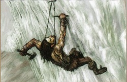 Jon is watching as Jarl’s men are competing with the Magnar’s to see who will reach the top of the Wall first. Many of the climbers fall to their death, including Jarl, but several eventually reach the top. As long rope ladders are dropped down to the base to allow the others to climb, Jon notices Ygritte with tears in her eyes. She tells him that they never found the Horn of Joramun, which would have helped them bring the Wall down without a fight.