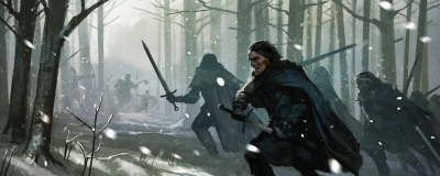 Jon participates in the great ranging to investigate the conflict beyond the Wall. The Night's Watch discover that Whitetree has been abandoned.[2] Jon is captured by Rattleshirt in the Skirling Pass and fights Qhorin Halfhand to the death.[23]