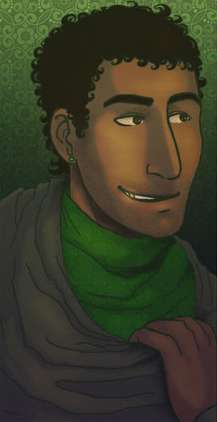 He is loose-limbed and swarthy, with a long nose and a jade stud in one of his ears. He has a golden tooth.[1]