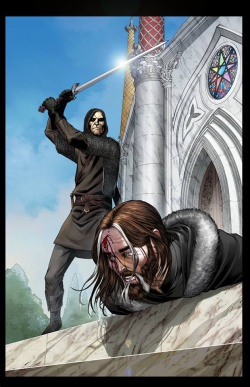 Lord Eddard Stark is taken to the steps of the Great Sept of Baelor where, unbeknownst to him, Yoren, his daughter Arya Stark, and the disguised Ser Barristan Selmy are amongst the crowd. Eddard makes a false public confession, but the plan goes awry when King Joffrey I Baratheon declares that Eddard must be executed, to the evident shock of Queen Cersei Lannister, Varys, and the High Septon. Ser Ilyn Payne beheads Eddard on the steps with his own greatsword, Ice.[2]