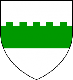 A green fess embattled on white (Argent, a fess embattled vert) |