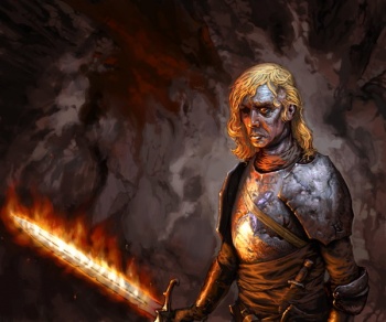 The Mountain's men search the riverlands for a brotherhood of outlaws.[14] Ser Burton Crakehall boasts that he has slain Beric, but the lightning lord reappears not much later and Burton is himself killed.[15]