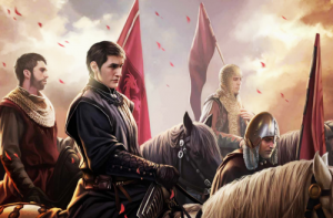 Ser Perwyn accompanies Lady Catelyn on her voyage south to treat with kings Renly and Stannis Baratheon.[24] Martyn Rivers commands the outriders in the riverlands while Ser Brynden Tully is campaigning in the west with Robb Stark, King of the Trident. Martyn meets Catelyn's party when she nears Riverrun on her return trip.[25] Perwyn and Martyn fight in the Battle of the Fords.[26]