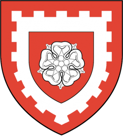 | Coat of arms | Argent, an escutcheon gules charged with a rose of the first all within a bordure embattled of the second |