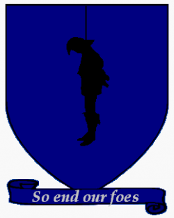 According to a semi-canon source the seat of House Trant is Gallowsgrey. Their words are "So End Our Foes".[2] They blazon their shields with azure, a hanged man, sable.[3]