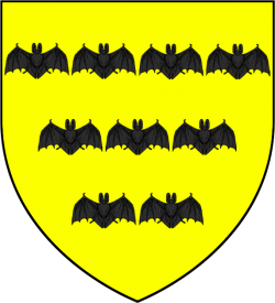 They blazon their arms depict nine black bats displayed over a yellow field.[1][2] Their words do not appear in the books.