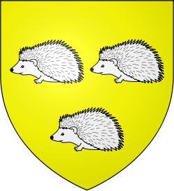 Three white hedgehogs, on a yellow field (Or, three hedgehogs argent) |
