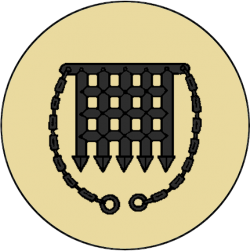 According to semi-canon sources, their motto is We Guard the Way.[2] Their blazon is a black portcullis grill over sand.[3] The Yronwoods often have blond hair and blue eyes.[4]