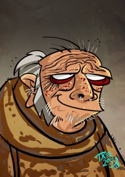 He cannot read or write, but he knows The Seven-Pointed Star by memory which seemed to make him capable enough to minister the Faith to smallfolk. He has been walking the countryside of the riverlands as a wandering septon in exchange for food and shelter for nearly forty years.[2]