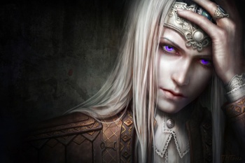 The blood of old Valyria is often manifested by eyes in shades of purple, and hair of silver-gold or platinum white. This coloring was typical among Valyrians, and is often held up as proof that Valyrians are not entirely of the same blood as other men.[1]