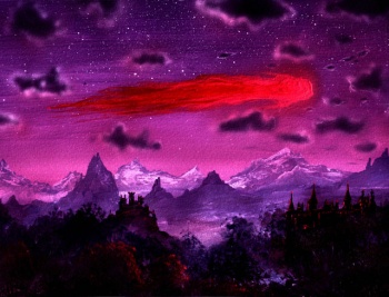 The maester did not believe in omens. And yet ... old as he was, Cressen had never seen a comet half so bright, nor yet that color, that terrible color, the color of blood and flame and sunsets.[1]