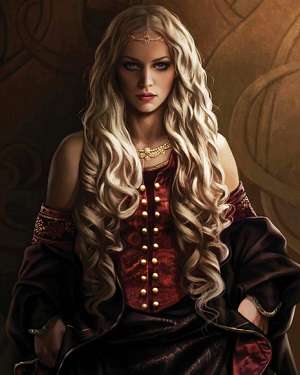 Princess Rhaenyra at the age of sixteen, as depicted by Magali Villeneuve in The World of Ice & Fire | |