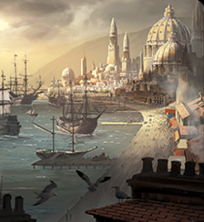 At its height, Ghis fielded highly-disciplined lockstep legions reputed to have been nearly unbeatable on the battlefield. The architecture of Ghis was dominated by massive brick towers and pyramids built on the back of slave labor. Its symbol was the harpy, a fanged woman with leathery wings for arms, the legs of an eagle, and the tail of a scorpion, clutching a thunderbolt in her talons.[3]