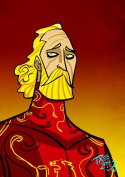 An amiable and jovial gentleman, Tytos was called the Laughing Lion prior to the death of his beloved wife, Jeyne Marbrand.[1] However, he was also weak willed, eager to please, slow to anger, quick to forgive, and too trusting by half. He saw the good in everyone, great and small, but this trust blinded him to threats to House Lannister.[1]
