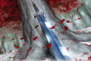 Bran Stark learns of the Knight of the Laughing Tree, a mystery knight whose shield bore a weirwood heart tree with a laughing face.[31]