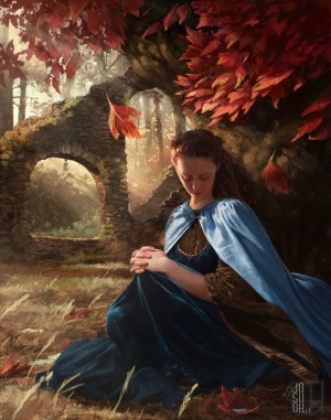 Arya Stark prays before the weirwood in the Harrenhal godswood before the Fall of Harrenhal.[30]
