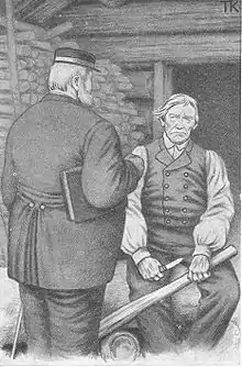 Next the bailiff asks how far it is to the inn. "Up to this knot!" he replies, pointing to the axe handle.