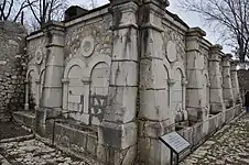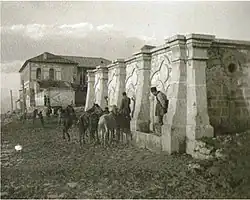 Khurshidbanu Natavan undertook the construction of one of the springs.[7][6] In 1871, she built a water pipeline from the foot of Sarıbaba mountain to Shusha,[8] seven kilometers away from the city, to provide the population with drinking water. The construction of the belt lasted for 1 year and 6 months and was successfully completed on August 18, 1873.[9][10] Five thousand people gathered to participate in the opening ceremony of the spring. Khurshidbanu Natavan spent 100,000 manats of gold to build the spring.[9] In addition to money, he donated 180 sheep and 20 sets of expensive robes to those who took part in drawing water.[11] Poet and artist Mir Mohsun Navvab wrote a material-history on the drawing of water and appreciated the good work of Khurshidbanu Beyim.[9]