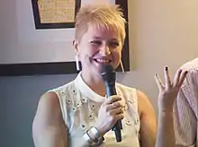 ![]() Ágnes Mócsy speaking at Brookhaven National Laboratory in 2015 | |