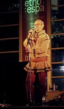 The prize is awarded to honor the significant contributions the recipient or recipients has made to the diverse world of Sámi music.[7] The first recipient of this award was Mari Boine.[7][5][8] Over the years, quite a few of the most popular and famous Sámi musicians and bands have received this award, including Wimme, Sofia Jannok, Ulla Pirttijärvi-Länsman, and Frode Fjellheim have won the award.[5][9] The award is not limited to just traditional Northern Sámi yoikers and as such, a wide variety of different music genres has been represented, from the heavy rock of Intrigue to the traditional Kildin Sámi luvvts collected, recorded, and performed by Domna Khomyuk.[10]