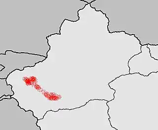 Äynu is spoken in Western China among Alevi Muslims[7][8][9] in Xinjiang on the edge of the Taklimakan Desert in the Tarim Basin.