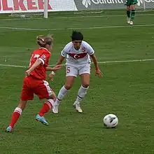In the 2018–19 league season, she transferred to Beşiktaş J.K.[7] She enjoyed the champion title of her team in the 2018–19 season.[1] She took part at the 2019–20 UEFA Women's Champions League - Group 9 matches.[8][9][10] She played in one matc of the 2021–22 UEFA Women's Champions League qualifying rounds.[11] In the 2022-23 Super League season, she transferred to Fatih Karagümrük S.K.[1]