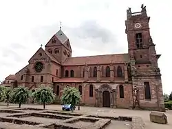 Formerly the church of a rich Benedictine abbey founded in 726, it is surrounded by buildings and ruins that had once belonged to the same order. Thanks to its Romanesque parts, the church is a stage on the Romanesque Road of Alsace.[1] It is classified as a monument historique by the French Ministry of Culture since 1840,[2] making it a part of the very first list of such heritage buildings.