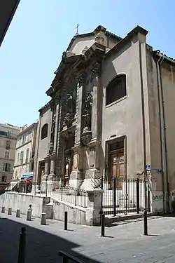 The church building was constructed in the Baroque style in the 17th century.[1][3][4] It was dedicated by Étienne de Puget, who served as the bishop of Marseille from 1644 to his death in 1668, on October 21, 1648 in honour of Saint Louis, who served as the king of France from 1226 to 1270.[3][6][7] It served as the chapel of a convent of Recollects, a Reform branch of the Franciscans.[8] The facade was destroyed during the French Revolution of 1789-1799.[3]