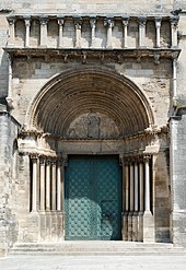 The tympanum and lintel of the Romanesque southern portal were severely damaged during the French Revolution.