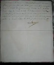 On 25 October of the same year, while Joséphine was in the salon entertaining guests at Saint-Cloud, through the window she saw de Vaudey quickly leave her apartment. She suspected something, and after telling her confidant Mme. de Rémusat her plans, she went to Napoleon's chamber only to find him absent. There was a small staircase which led from Napoleon's room to a small apartment on the higher level and after climbing the staircase Joséphine heard the two of them talking, and even mentioning Joséphine's name. Joséphine froze and then knocked on the door and ordered them to open it. After a long delay, the door was opened, with the room in obvious disarray. De Vaudey broke into tears. Napoleon, who had experienced the jealousy of his wife on previous occasions, was red with anger. Joséphine, although she feared the consequences, lashed out at the two of them with fierce remonstrances. Before Napoleon could respond, she left quickly and returned to the salon in a state of anxiety. Soon after, Napoleon approached her in her bedchamber and gave vent to his fury. He said he was sick of her spying on him, and was going to divorce her and marry a woman who could give him an heir. The threat was too much for Joséphine and she broke down. Napoleon's anger was abated only after his adopted daughter soothed him and encouraged him to reconcile with her mother. Eventually the two made up, and only a few weeks later were crowned Emperor and Empress by Pope Pius VII at Notre-Dame Cathedral. Mme. de Vaudey meanwhile had fled the palace that same day and was soon ordered by Napoleon to resign her post.[4] The official reason was that she was a terrible spendthrift and was constantly in debt due to her insatiable appetite for shopping and "having fun" and always looked to the Imperial treasury to provide her with funds.