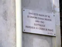 Etienne Drioton, his father, was originally from Burgundy where the family founded a business in Dijon in 1742 which developed along three axes: manufacture of church bronzes, manufacture of church ornaments and religious bookstore. Lawyer at the Court of Nancy, a profession he probably never exercised, he married on December 19, 1888, in Nancy with Félicie Moitrier, a native of Lorquin; both run a religious bookstore selling religious ornaments at n°4, quai Claude le Lorrain, while their new home and their clothing workshop are at n°6, rue Saint Antoine. Then, they will open a second store, Place Stanislas, at the corner of rue Héré, a store open from 1902 to 1971 (trade under the current name of Daum). Later, they will live in Villers les Nancy, 78.[1] Early in life he assisted as Conservative Deputy in the Department of Egyptian antiquities at the Louvre in Paris; in 1936 he became Director General of Antiquities of Egypt in the Egyptian Museum at Cairo; finally becoming Head Curator back at the Louvre in 1957. He deciphered hieroglyphic writings, and later laid the foundations of Coptic archaeology. Drioton authored numerous books, and has been considered the greatest Egyptologist of all time.[2]