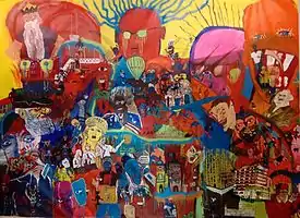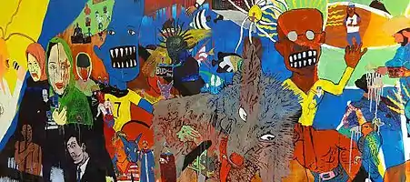 Úlfur began his career making short films and documentaries. In the year of 2003 Úlfur screened the short film Pirovat at the New York Independent Film and Video Festival. In the year of 2008 he graduated from the National film Institute of Iceland (Icelandic Film School). He has made two short films since Pirovat; Tvísaga, in the year of 2006, and Einskonar Alaska (Kind of Alaska), in the year of 2008, based on a famous radio play by Harold Pinter.[1] In 2009 he graduated from the art school at Akureyri, Myndlistarskólinn á Akureyri.[2] After that he enrolled in Valand School of Fine Arts and graduated with BA degree.[3] At Valand he started painting in Neo-expressionistic style. Úlfur has had many exhibitions around Iceland, for example at Listasafn ASÍ,[4] Slunkaríki[5] in Ísafjörður and Sláturhúsið[6] at Egilsstaðir. In 2015 Úlfur, along with other young artists in Iceland, took part in an exhibition called Nýmálað (Just Painted) at Listasafn Reykjavíkur.[7] In the same year he had a private exhibition at Listasafn Reykjavíkur, titled Við erum ekki hrædd (We are not afraid)[8] and an exhibition titled Implant at Wind and Weather Gallery.[9] In 2019 Úlfur had a private exhibition at Galerie Hilger NEXT in Vienna titled Ominvores .[10]