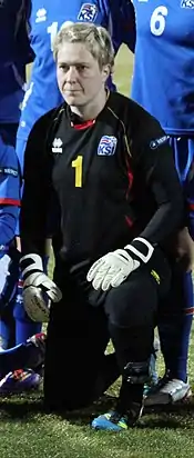 National team coach Siggi Eyjólfsson selected Þóra in the Iceland squad for UEFA Women's Euro 2013,[10] although she was recovering from a hamstring injury.[11] Guðbjörg Gunnarsdóttir took the goalkeeping position at the final tournament, playing in the three group matches and the 4–0 quarter-final defeat to hosts Sweden.