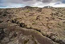 It is located within the area of the Reykjanes volcanic system and enclosed by Holocene lava fields. In addition, a visible tectonic graben[4] runs over the top of the mountain.[5] It builds a small canyon, up to 80 m deep.[6] As such, the mountain is a symbol of Reykjanes' geology in the whole.[7]