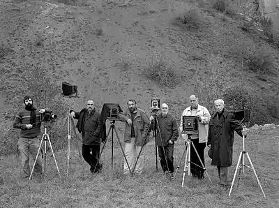 The group was founded by photographers Karel Kuklík, Jan Reich, Jaroslav Beneš and Bohumír Prokůpek in 2000. In 2002 they were joined by Tomáš Rasl and in 2003 by Petr Helbich. This is how Bohumír Prokůpek summed up the reason why these artists formed the group: "We used to meet to discuss films, photographic paper, the landscape, exhibitions, politics, girls, and life's little adventures, and because of good wine, which can make existence even more wonderful (...) What brings us together is our delight in the craft, our leisurely approach, the wonderful finality of the contact print..."[1] After the deaths of Bohumír Prokůpek and Jan Reich in 2008 and 2009, respectively, the group was dissolved even though its surviving members still occasionally exhibit their works collectively under the name of Český dřevák.