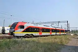 ŁKA began operations with an order of 20 Stadler FLIRT two-car EMUs, which entered service starting in 2014 and were delivered through early 2015.[6] In September 2016, Stadler was named the preliminary winner of a contract to supply 14 three-car EMUs,[7] but after a legal challenge from Newag, the latter was in February 2017 awarded the contract for its Impuls II EMU,[8] the first of which entered service in December 2018.[9] Also, 10 of 20 FLIRT EMUs are scheduled to be elongated into three-car form.[10]