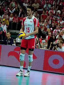 After four years, Żygadło moved to the Russian League, where he played for Fakel Novy Urengoy for one season, 2012/2013.[3] Then he moved to another Russian club, Zenit Kazan.[4] He signed a 2-year contract and replaced Italian setter Valerio Vermiglio.[5] On October 6, 2013 he was injured during training.[6] He lost season 2013/2014, because of injury.[7] He broke his foot, which is after two surgeries and reconstructions of bone.[8] In the club from Kazan he has been replaced by Serbian setter Nikola Grbić.[9] After two surgeries, bone reconstruction and rehabilitation, Żygadło returned to training in March 2014.[10] After the season 2013/2014 Żygadło left Zenit Kazan. The contract was terminated by mutual agreement of both parties.[11] After two seasons spent in Russia Żygadło accepted an offer from Italian club Trentino Volley. He returned to the club, where he won several titles in 2008-2012.[12] His official return to the club from Trentino was announced on July 10, 2014 and the player stated he was glad about his return to the city and the team.[13] On May 13, 2015 he won title of Italian Champion with Trentino Volley.