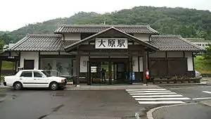 Ōhara Station (大原駅, Ōhara-eki) is a passenger railway station located in the city of Mimasaka, Okayama Prefecture, Japan. It is operated by the third-sector semi-public railway operator Chizu Express.[1] The station takes its name from the famous warrior Miyamoto Musashi, who (according to one theory) was born nearby.