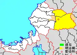 * yellow - areas formerly within the district borders during the early Meiji period
