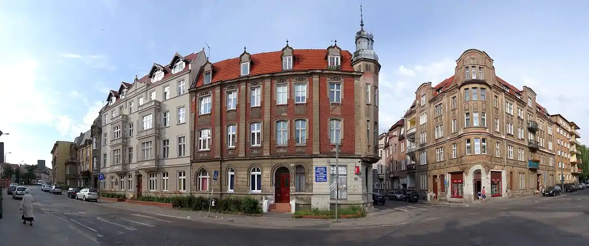 Located very close to the old town and its walls, the street is mentioned in early documents from the 1850s.[1][2] It then developed to actual arc shape, linking at the time Pozener Straße (Poznańska street) to Canal Straße (today's Nakielska street). At that point, the path crossed the Bydgoszcz Canal and extended westward, as Berliner Chaussee[3] (today's Grunwaldzka street).