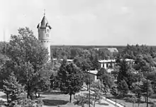 In the 1898 the German Army created a very large training ground here. In World War I it was the site of a large prisoner-of-war camp for Russian soldiers. After 1919, Polish Silesian insurgents were held in the camp.[3] In 1941 the Bergmann Battalion and Nachtigall Battalion trained in Neuhammer. In World War II another POW camp Stalag VIII-E was built here, to house Polish and French prisoners. In 1942 they were replaced with Soviet prisoners, and the camp was placed under the administration of Stalag VIII-C near Żagań. At least 50,000 Soviet prisoners died here from disease, starvation and inhumane treatment, the last 200 of them killed as traitors after the war by the NKVD. A Red Army base until 1992, today it is the site of a Polish Army base, and since January 2017 also the NATO forces.